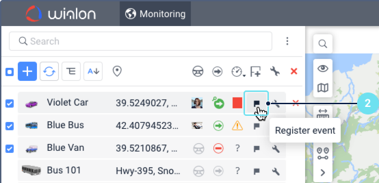 - Make sure that the unit for which you want to register a battery charge is added to the work list on the Monitoring tab and the Event registration option is enabled for the work list.
