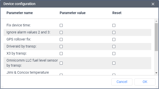 | GPS rollover fix | Enable in case the device sends an incorrect time stamp due to a GPS rollover. |