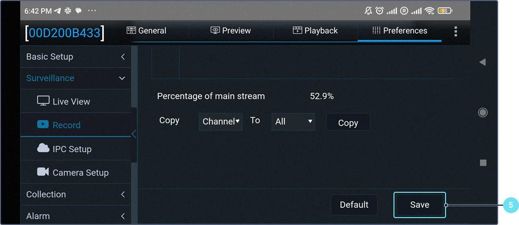 To configure the recording mode, recording parameters and audio parameters, follow the steps below.