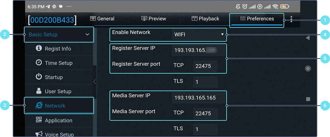 Set the Media server IP and Media server port fields to the same values as the Register server IP and Register server port fields.