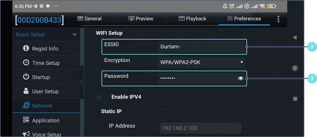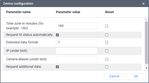 | Time zone in minutes (for example: -180) | Here you can specify the time zone of the device in minutes. For example, for UTC+3 enter 180, and for UTC-5 enter -300. The time zone affects video playback requests and message registration. |