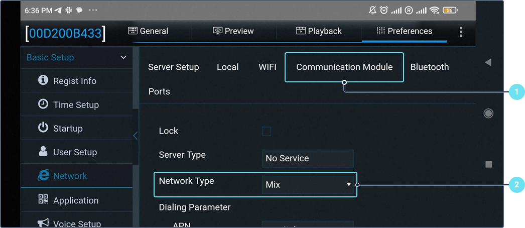 Select the network type as required. The available types are 2G, 3G, 4G, Mix.
