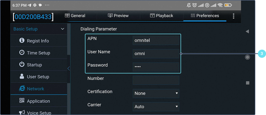 Specify the APN settings, including the APN, username, and password as provided by your mobile operator.