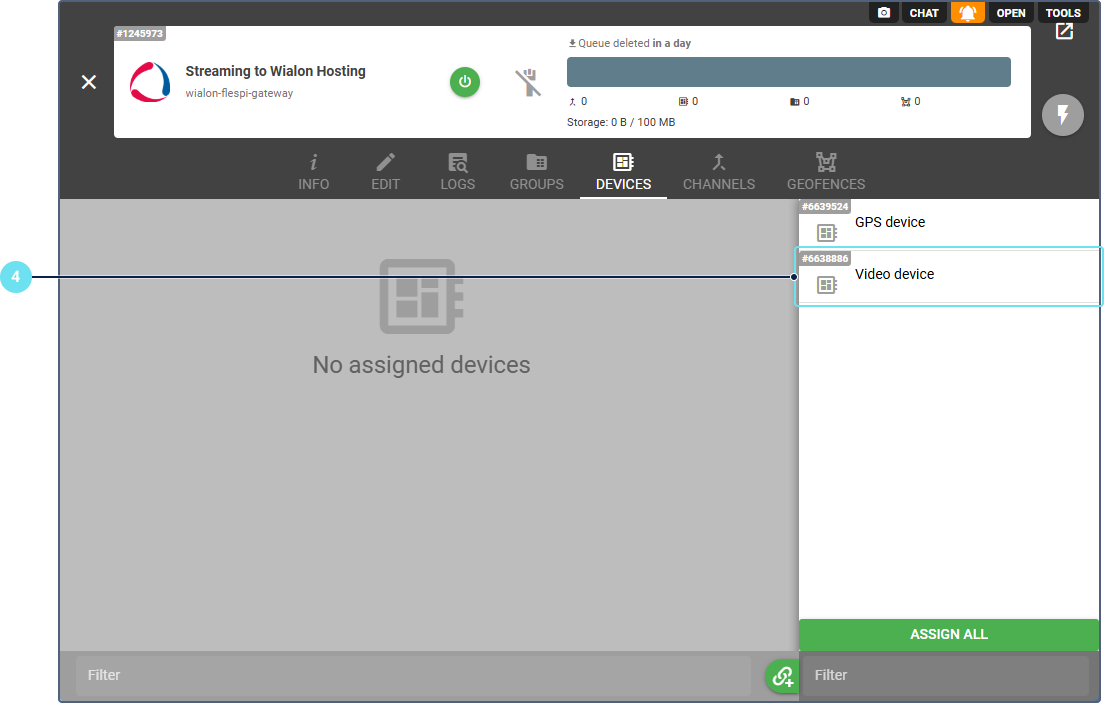 As a result, you should have two devices created — Video device and GPS device. The Video device will be used as the main tracker, and the GPS device will serve as the secondary device which provides data that is copied to the main one.