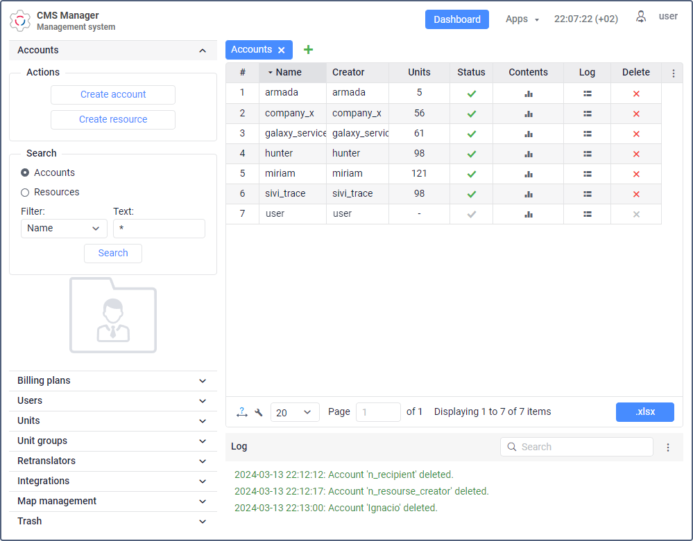 The management system is designed for Wialon partners (telematics service providers and companies offering fleet digitalization solutions). It enables them to organize the service structure and manage accounts, resources, billing plans, users, units, and other system objects. Within the system, these users are considered top account users and users of accounts with dealer rights.
