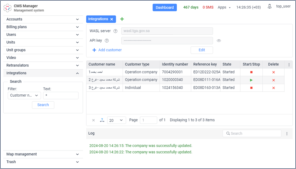 Wasl server | The address of the Wasl server to which data from Wialon should be transmitted. By default, wasl.tga.gov.sa is indicated. |