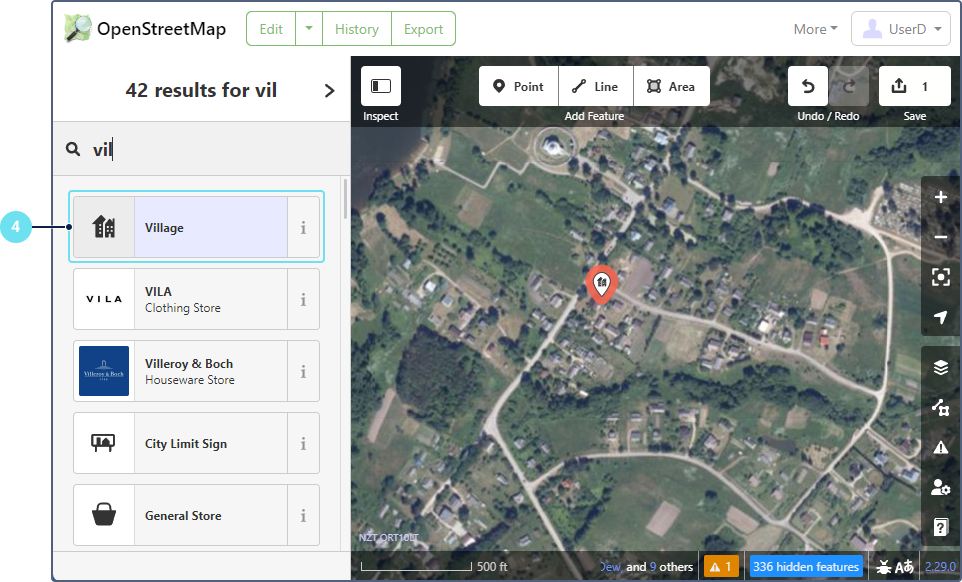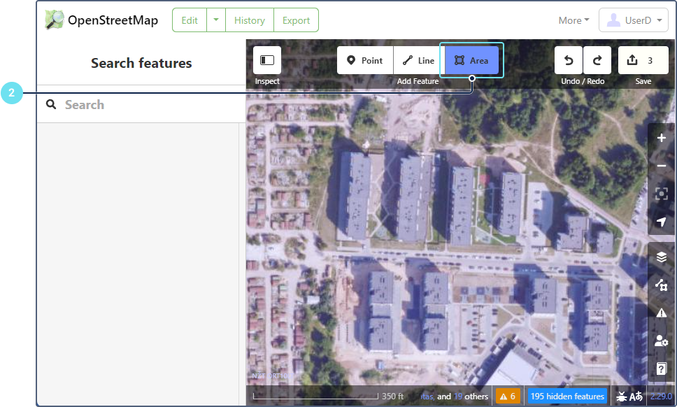 - Use the search field or navigate the map to locate the area you want to edit.