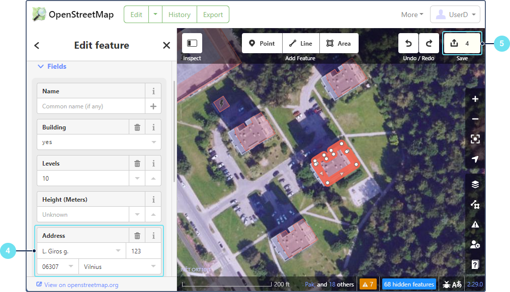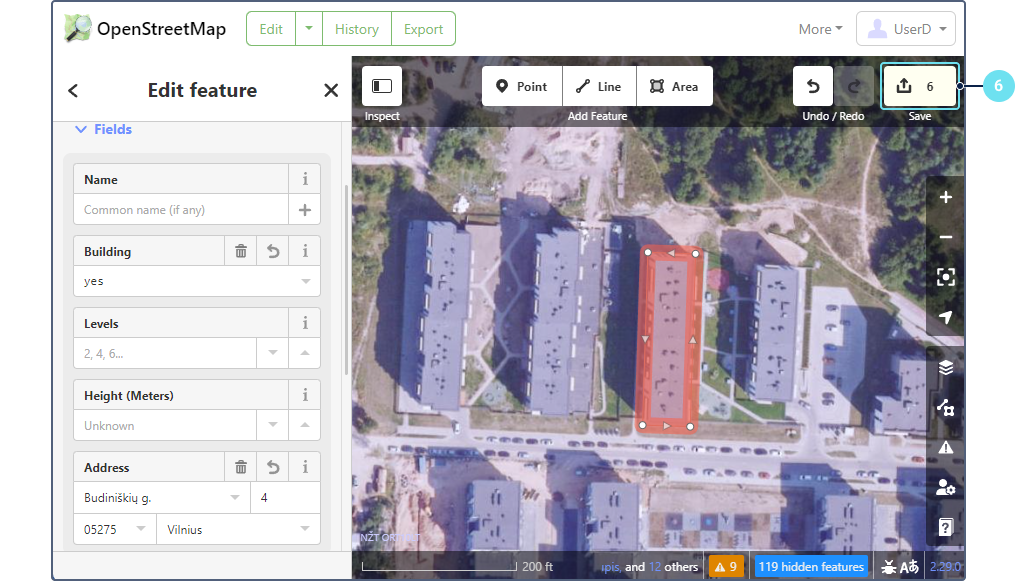 - Zoom in on the required building polygon.