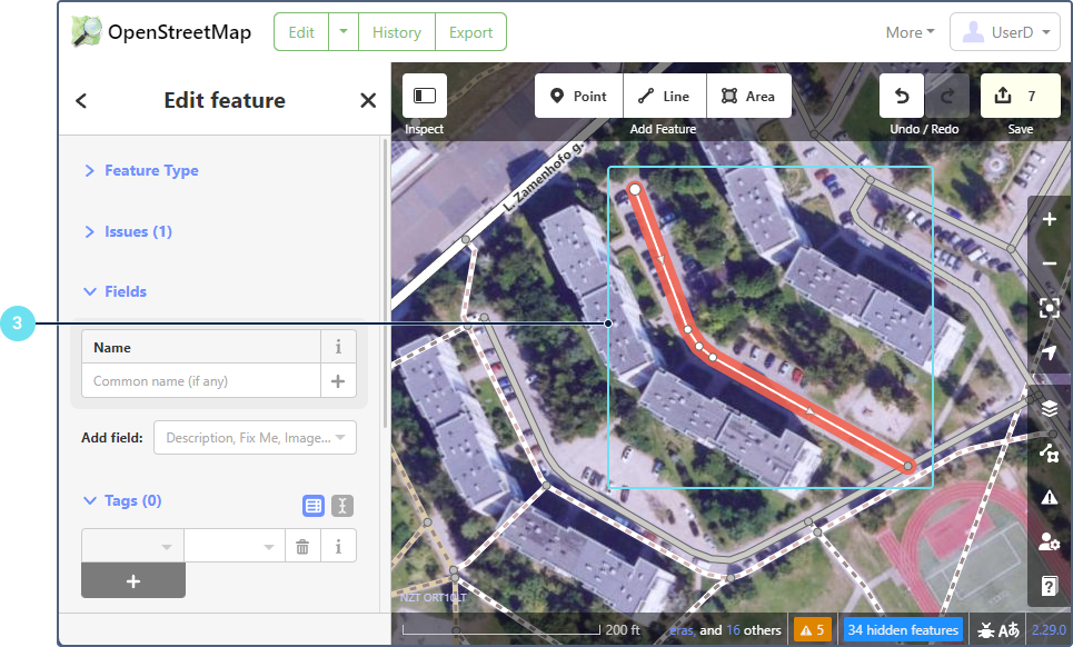 - Add the road name and other tags if needed.