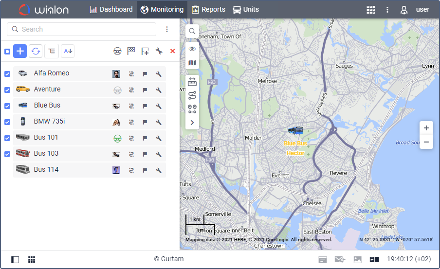 The monitoring system is used by end users to track their units (vehicle fleet, machinery, employees, pets, etc.).