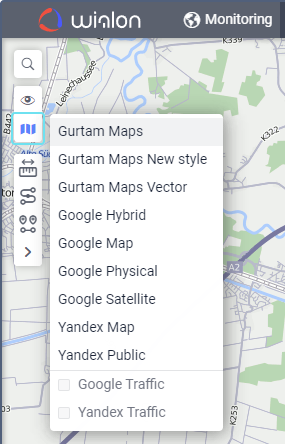 Depending on the selected base layer, additional layers can be available for it. They allow displaying the following information on the main map: traffic on roads, maritime navigation, or weather. To enable the required layer, select it in the section of additional layers.