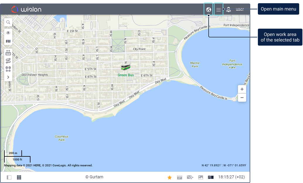 Depending on the services activated for your account or billing plan, the main menu can contain different tabs for working with the system, and an icon for going to the applications.