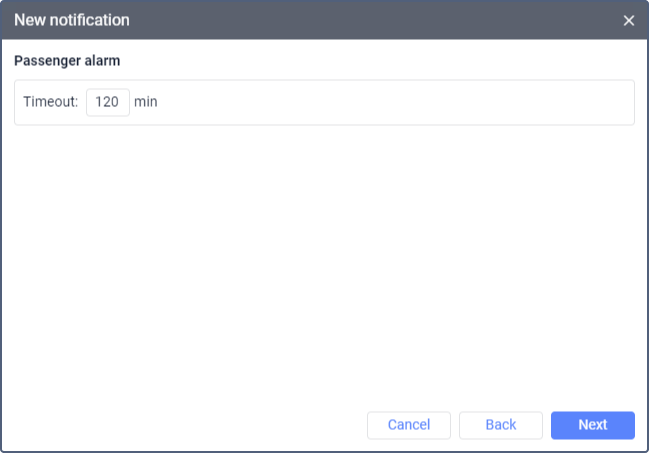 A notification of this type is triggered if any passenger of the seleted resource hasn’t got off the vehicle (that is, hasn’t been separated from the unit) within the specified timeout. The timeout is counted from the moment the passenger is assigned to the unit.