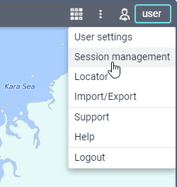 To open the window, click on the username in the upper-right corner and select the Session management item.