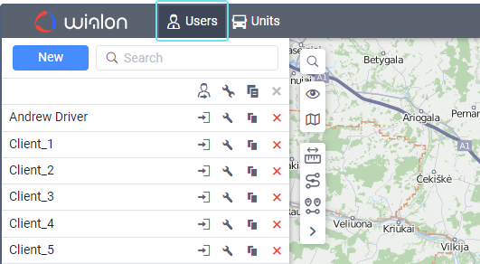 A user is a macro-object of the system, which has a unique name (login), password, and certain access rights to other macro-objects. Using the login and password, the user can log in to the Wialon system and work with its objects according to the granted access rights.