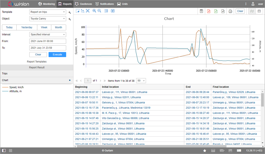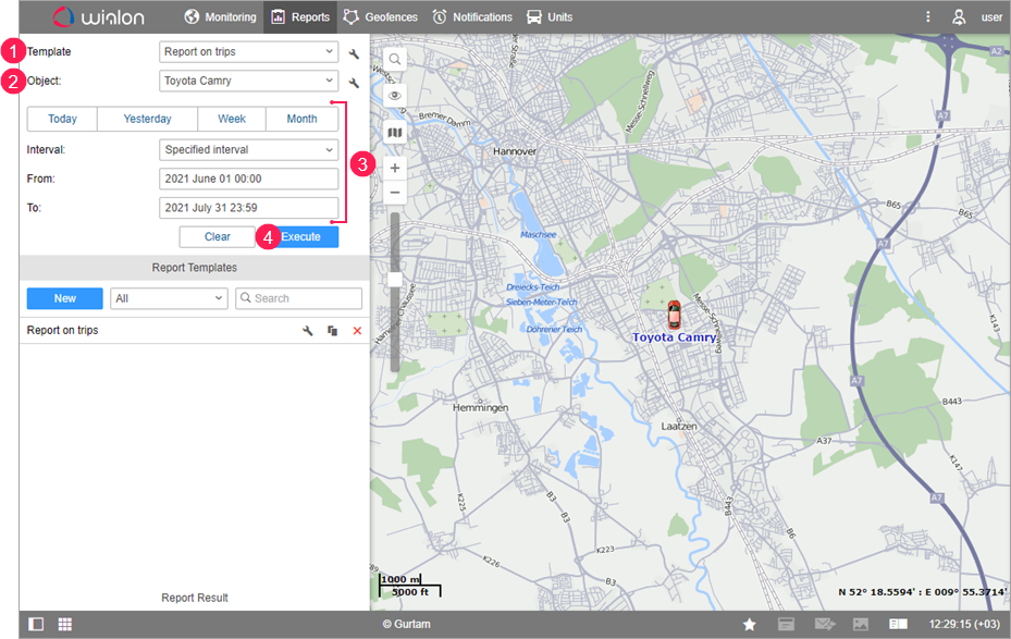 Reports in Wialon can be executed using previously created templates. The template contains information about the tables and charts that can be included in the report, as well as its settings.