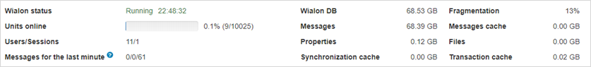 | Messages | The total size of all messages in the Wialon database. |