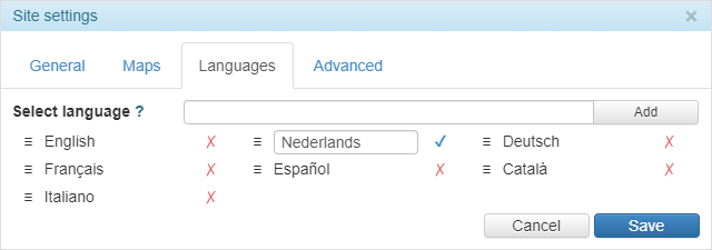 In the user settings, the languages are displayed in the same order as in the list you have made. To change this order, drag the language to the required place using the icon