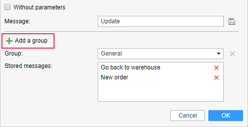 To add a message to the group, enter the text of the message. Then, in the drop-down list of groups choose the one it should belong to.