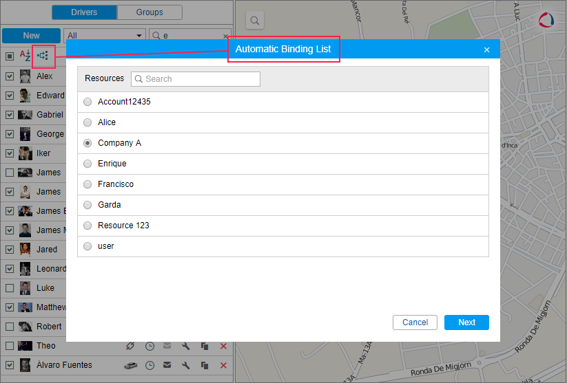 2. Create a list of units for any resource the drivers of which are intended to be bound automatically. In order to do so, click ‘Auto-binding’ icon (