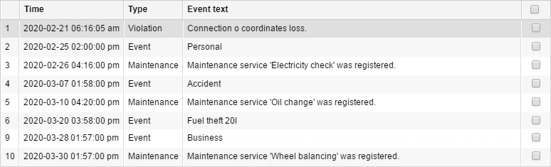 Manually an event can be registered in the special registrar in the monitoring panel. With this method, you can register fuel fillings, maintenance, unit statuses, and any custom event.