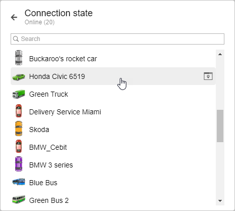 Click on the geofence name to see the list of all the units located in it. Above the list is a dynamic search to find units by name. Click on the line with the unit to open its minimap.