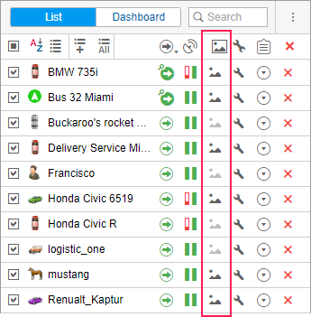 If the equipment supports such an option, units can send pictures or video files. Pictures and videos can be viewed in the Messages panel, as well as in the Monitoring panel. To display a special column in the Monitoring panel, activate the Media option in the Monitoring panel customizer.