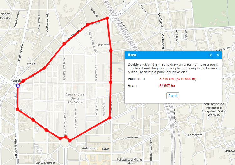 Use the Reset button to clear the map and draw a new section.