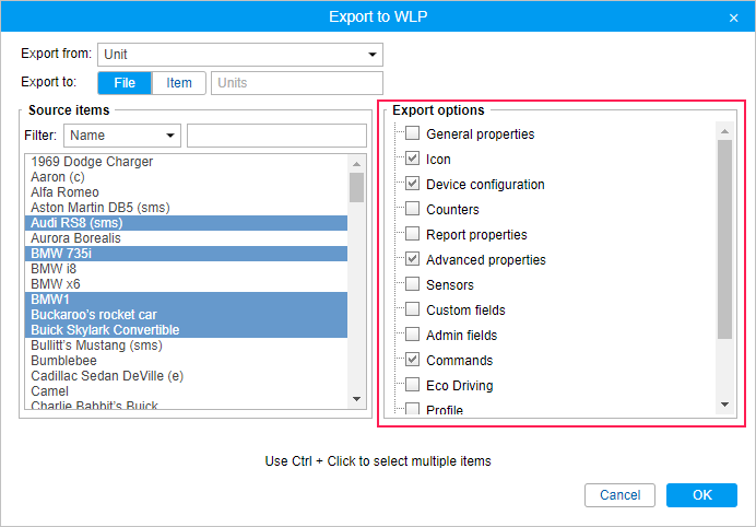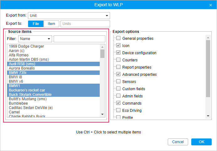 You can also use the dynamic filter when adjusting the access rights on the Access tab of the user, unit, and unit group properties. Moreover, you can use the dynamic filter to select a resource when creating notifications, jobs, report templates, geofences, drivers, or trailers (as well as their groups and automatic binding lists).