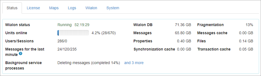 | Messages | The total size of all messages in the Wialon database. |