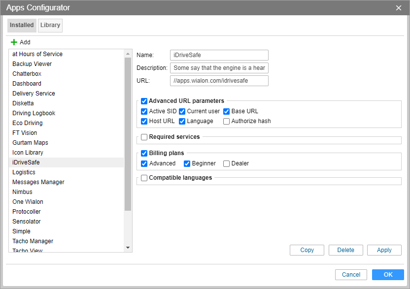 On the Library tab, you can select a suitable application and add it with a single mouse click. Adding application from the library is a little bit easier as all the mandatory parameters and the advanced URL parameters are indicated by default.