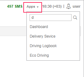 To start an application, click on the Apps item in the top panel. A menu opens that lists all available applications (in alphabetical order). The dynamic filter is used to quickly find the necessary one. Click on the app’s name to open it in a new tab of the browser.