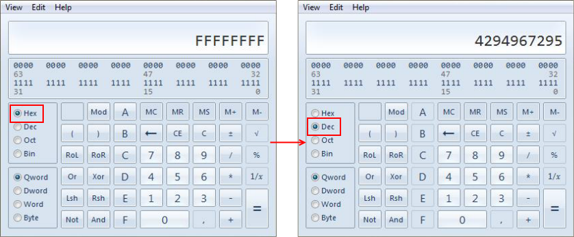 Firstly, you should define the maximum threshold for such numbers. In order to do so, take any of the incredibly large digits, which occurs in the values of the parameter, and enter it into a calculator in the decimal mode (Dec.). Afterwards, switch to the hexadecimal displaying (Hex. mode).