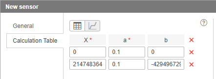 Open the unit properties and create a sensor on the basis of this parameter. Now you should create a calculation table for it. Switch to the Calculation table tab of the sensor properties.