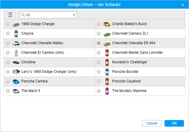 To unbind a driver from a unit, click on the icon of the unit next to the driver’s name and click on the button