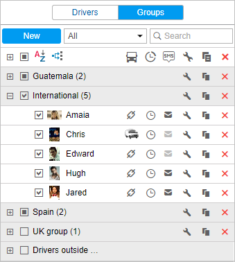 Series of standard actions are available for drivers in a group (unfold a group in order for the corresponding buttons to appear).