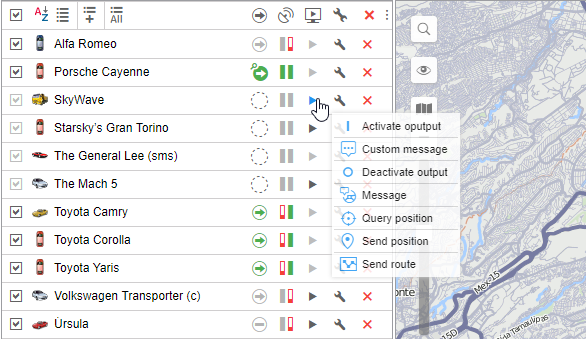 Put the cursor over the active button next to the required unit to see the list of available commands. The list can contain only commands configured on the Commands tab. Furthermore, only commands available at the moment are shown (the availability of link types is important here).