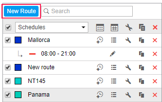 When a route has schedules, it is impossible to change the sequence of check points, add or delete them. To edit such a route, make its copy and alter the necessary parameters before saving. Then delete the original route. However, you will have to configure schedules and rides again.