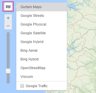 To change the base layer of the map, click on the button