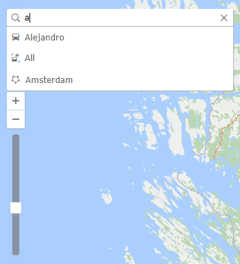 . This tool is used for the dynamic search of such system objects as units, geofences, unit groups, drivers, trailers, passengers, routes. Also, if the names of the above-mentioned objects do not contain the entered characters, then a list of addresses that match the specified filter is displayed (the search is performed in accordance with the selected geodata source).