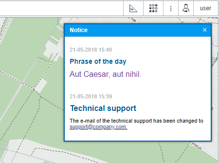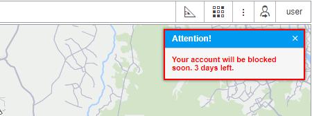 Information notices from the service manager can appear in the top panel under the username, as well as notices on the number of days left before blocking the tracking system (if specified by the tariff agreement).