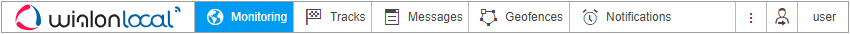 In the upper panel on the left, there is the logo of the tracking services provider, and on the right, there is the menu setting button and the username with which the user has logged in.
