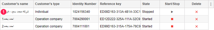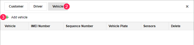 In the table of customers, click on the row of the customer for whom you want to register a vehicle.