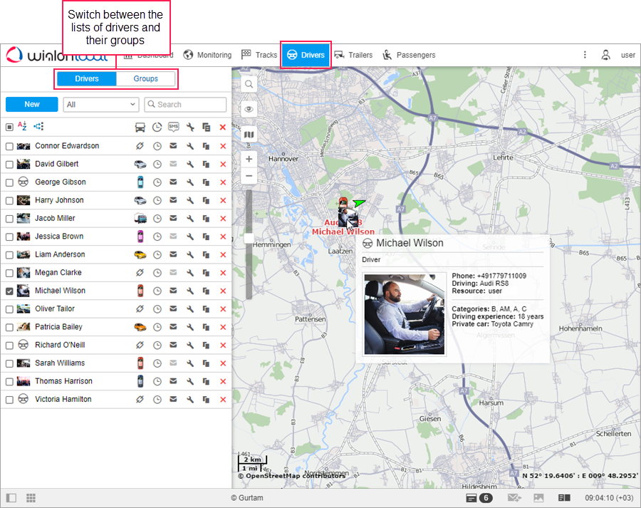To work with drivers, click on the Drivers tab in the top panel or select a same-name item in the main menu. To work with groups of drivers, switch to the Groups mode.