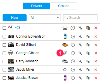 opposite to the required driver in the list of drivers or their groups. If you don’t have the Create, edit and delete drivers access right to the resource, the icon is inactive (