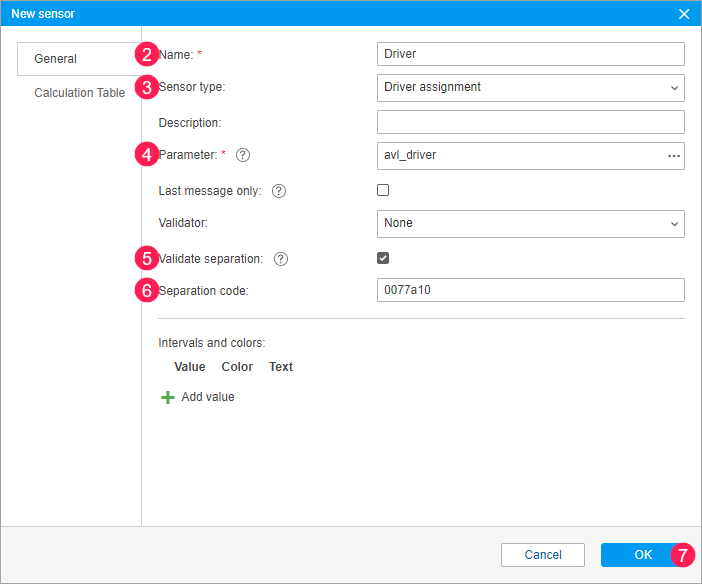 - create a sensor of the Driver assignment type in the properties of all units that should be used for automatic assignment and separation;