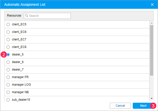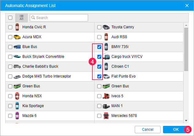 - Select the units to which the drivers of the selected resource should be assigned automatically.