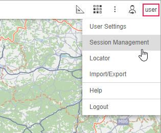 To open the window, click on the username in the upper-right corner and select the Session Management item.