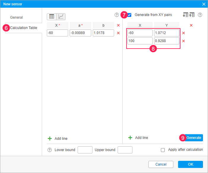 If the parameter sends not temperature but voltage data, then instead of the minimum, maximum, and rated temperature, you should find out the minimum and maximum voltage as well as the rated voltage of the reference volume and calculate the coefficients using this data.