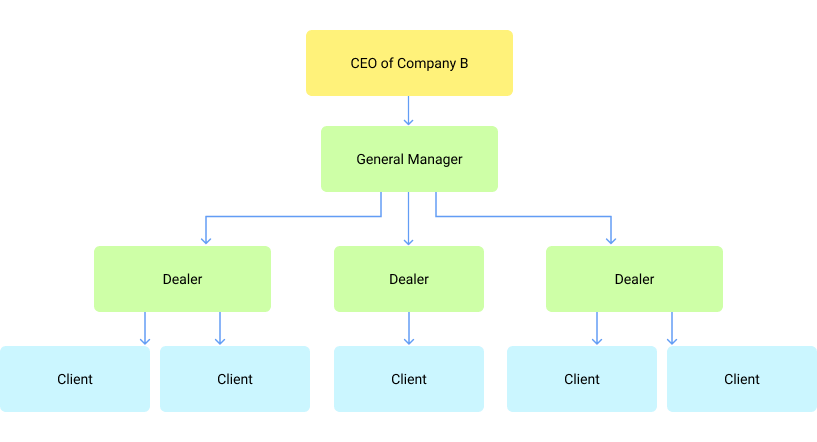 - Now the dealer can organize the hierarchy of subordinate accounts depending on the specifics of their business.